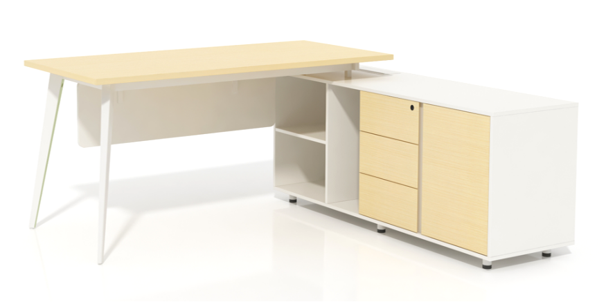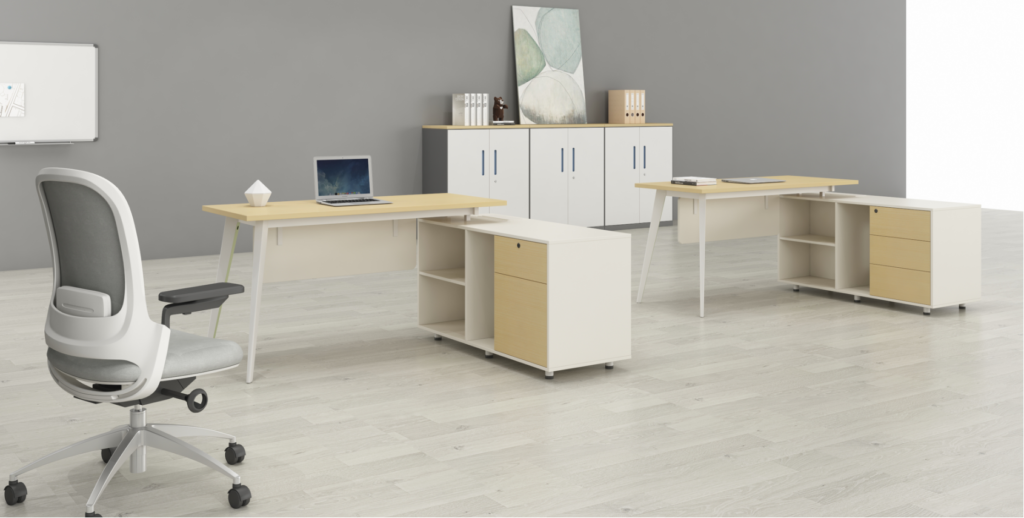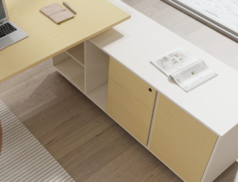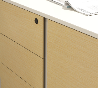 All models use concealed handles, which are clean and tidy overall. The wood and warm white colors give a relaxing feeling and are suitable for different office spaces.