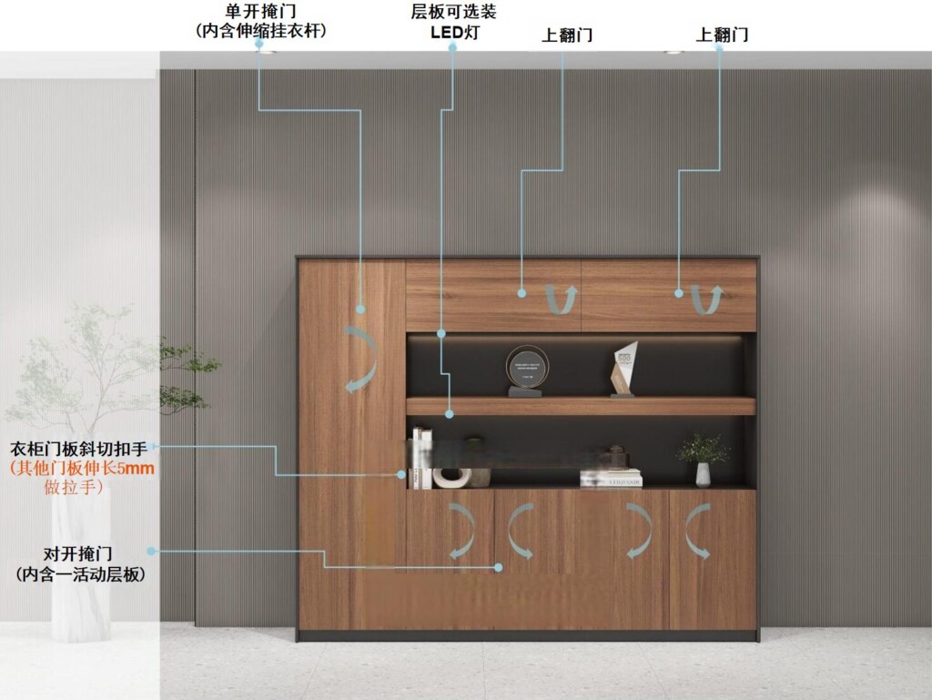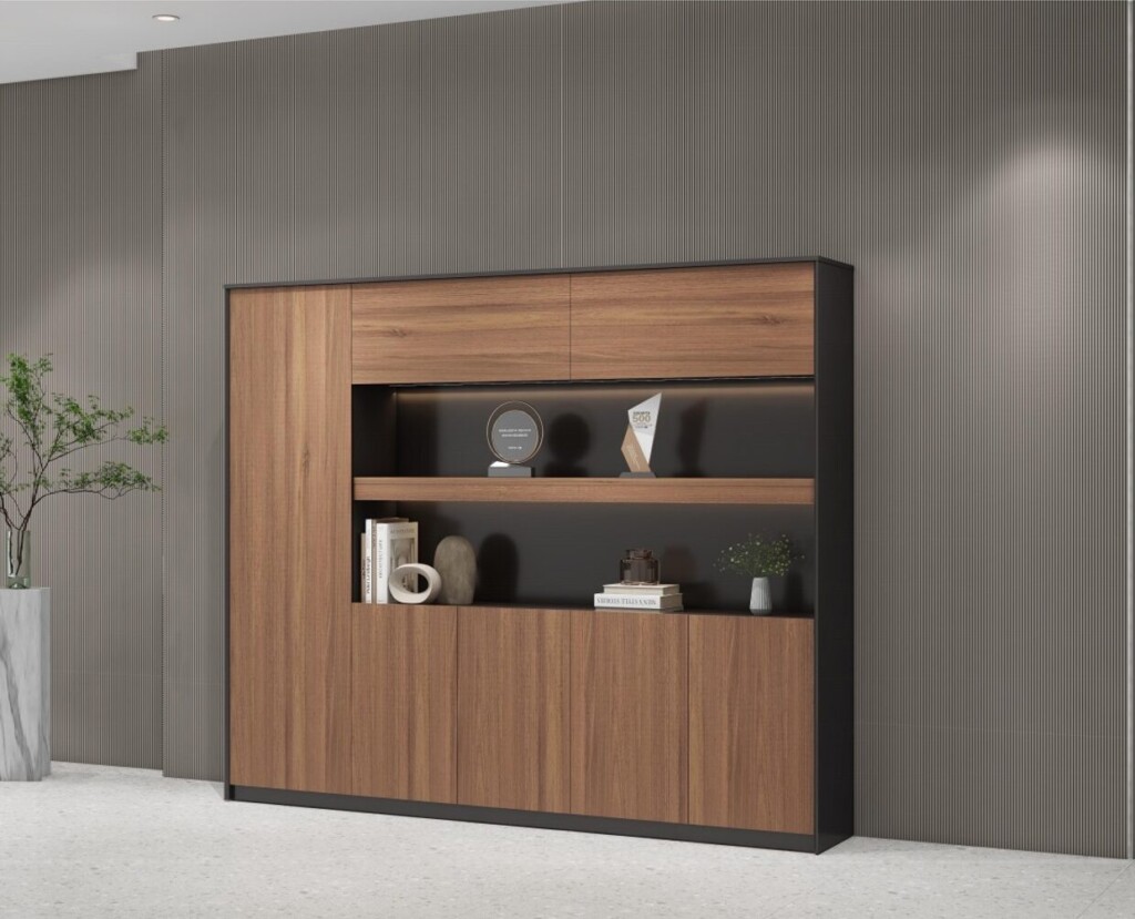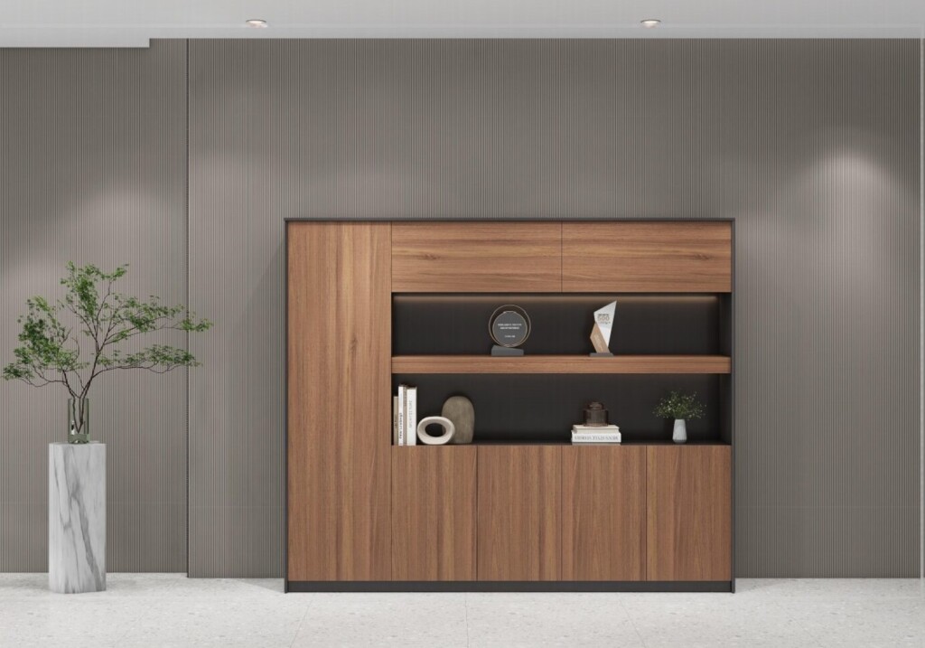 Unique filing cabinet with smooth and pleasing lines, and warm light strip design, not only showcasing the manager’s elegant taste, but also optimizing the office space