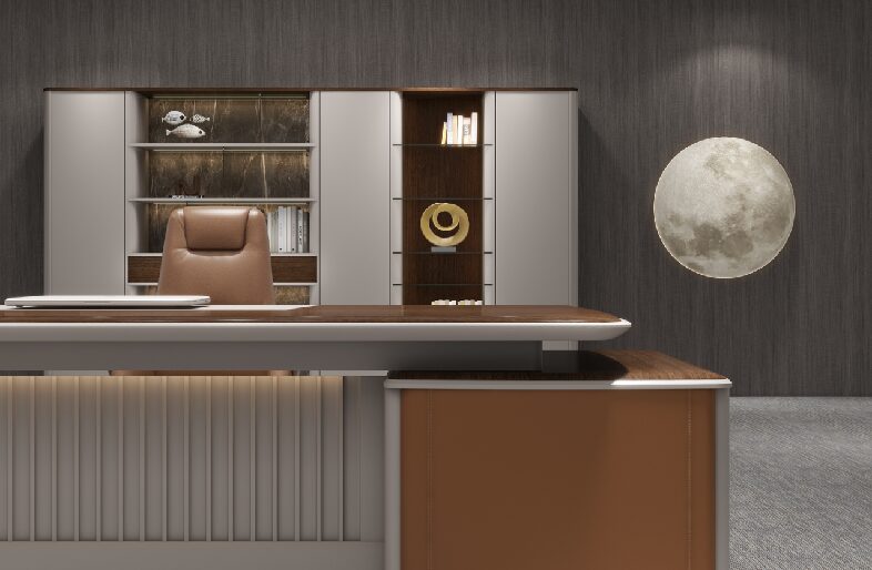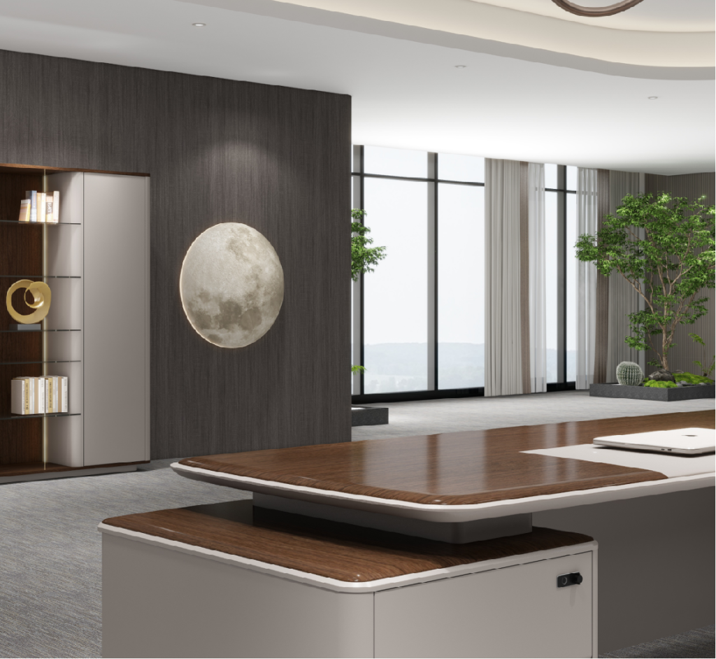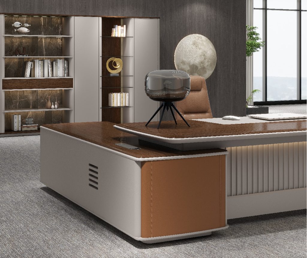 Both the countertop and the attached cabinet top plate adopt a large curved edge design, combined with a dual curved dual color process. Not only do the lines flow smoothly, but they also give the product rich details and three-dimensional sense, helping leaders to work efficiently and think deeply.